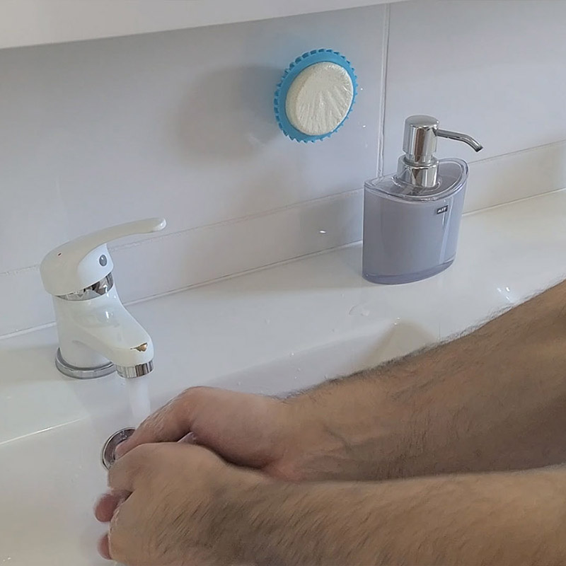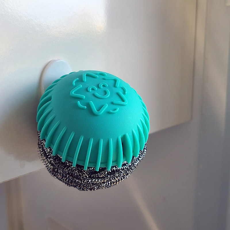 Grâce à son aimant intégré et à son jeton métallique adhésif, SCRUBBALL s’accroche et se vide instantanément où vous le souhaitez. Ainsi, SCRUBBALL sèche rapidement, évitant ainsi la prolifération des bactéries et les mauvaises odeurs.