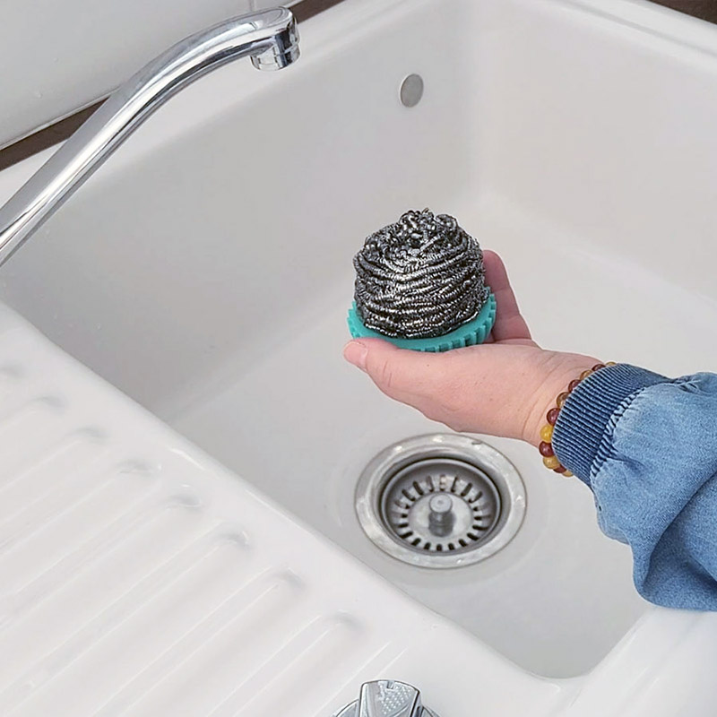 - Contenu de la boite: 1 SCRUBBALL en silicone + 1 jeton métallique + 1 Paille de fer 20 gr