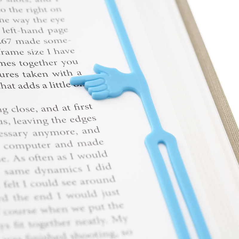 Ce marque-page souple permet de marquer sa page mais aussi sa ligne en positionnant l’index de la main sur la ligne à reprendre lors de la prochaine lecture. Pratique et malin!